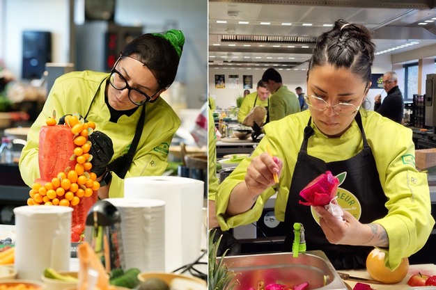 I finalisti hanno avuto la mattinata per pelare, tagliare, affettare, mescolare, pressare, cucinare e condire una varietà di frutta e verdura, come richiesto dagli organizzatori. Ogni coppia aveva anche portato una propria selezione di 5 varietà di frutta e verdura, consentendo loro di aggiungere un tocco più personale alle loro ricette.