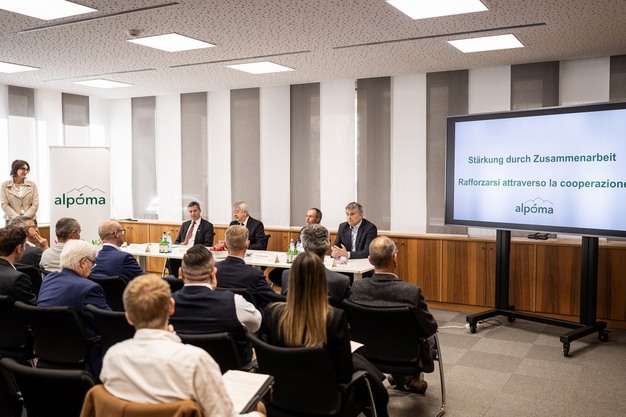La nuova AOP è stata presentata a Terlano dai presidenti Georg Kössler (VOG), Thomas Oberhofer (VIP) e Johannes Runggaldier (VOG Products). Mantenendo l'autonomia e l'identità dei suoi tre costituenti, alpoma consentirà di raggiungere in modo più efficiente e coordinato gli obiettivi di sviluppo del settore frutticolo locale.