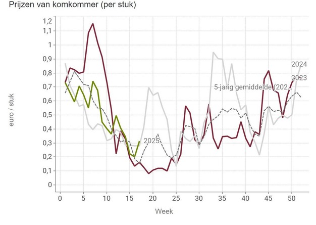 Volete vedere i grafici dei prezzi all'ingrosso? Potete farlo sulla pagina dei dati agricoli del Ministero dell'Agricoltura e della Pesca fiammingo. Tutti i prezzi medi degli ortaggi per la settimana 17 sono visibili qui.