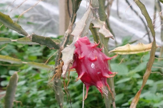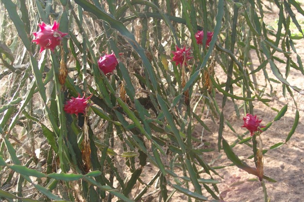 Piantagione di pitaya a Sabaudia con frutti rossi