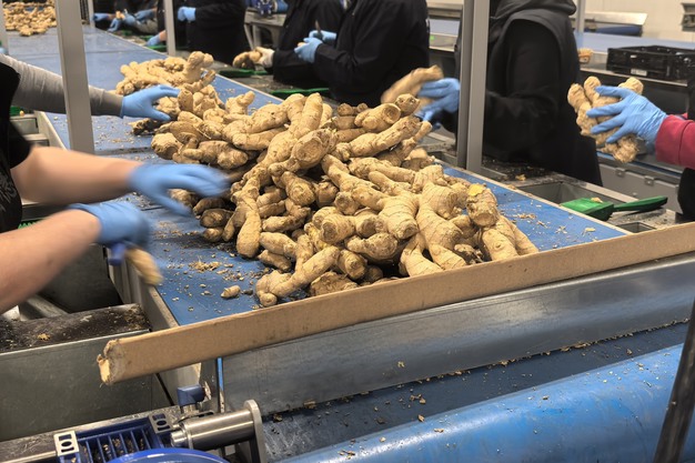Lo zenzero cinese è un marchio a sé stante. Maggie spiega: "La gente sa che la Cina è la patria di questo speciale rizoma. Inoltre, questo delizioso prodotto ha un ottimo rapporto qualità-prezzo. La nostra fornitura per l'Europa è destinata esclusivamente al mercato del fresco. Il nostro intenso supporto ai coltivatori ci permette di raggiungere una qualità talmente elevata che lo zenzero non è destinato all'industria di trasformazione".