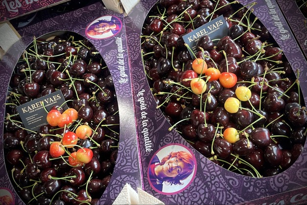 La stagione delle ciliegie alla Hellingenfort sta andando benissimo, come conferma il proprietario Karel Vaes. "È una campagna straordinaria. L'abbondanza di sole rende le ciliegie particolarmente dolci, le rese sono buone e il terreno di Haspengouw è resistente al caldo e alla siccità, quindi prevediamo un'annata florida", afferma il coltivatore dell'azienda agricola della Hellingenfort, aggiungendo che le temperature miti stanno favorendo un aumento dei consumi. "Le ciliegie sono un prodotto tipicamente stagionale e, con questo clima, vanno a ruba".