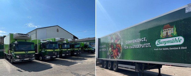 Una panoramica della flotta di veicoli della Burgmühle Salate und Gemüse GmbH. L'azienda consegna i suoi prodotti esclusivamente in proprio, con una shelf life di tre giorni.