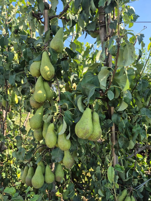 Christophe è soddisfatto anche della qualità. "La stagione vegetativa è andata molto meglio rispetto allo scorso anno, con meno frequenti eventi meteo estremi e grandinate. La recente siccità ha comunque causato qualche problema ad alcuni coltivatori, ma la maggior parte è riuscita a irrigare a sufficienza. Le alte temperature dell'ultimo periodo non sono state ideali per le pere, ma la maturazione ormai è iniziata, quindi possiamo fare poco a riguardo. Questo non incide però molto sulla qualità. In generale, abbiamo buoni calibri, e non è stato negativo che all'inizio ci sia stato un po' di panico per i volumi di pere, perché dove i frutti non sono troppo fitti sugli alberi, le pere hanno calibri più regolari. Nei lotti dove gli alberi sono invece molto carichi, i calibri sono leggermente più piccoli, soprattutto considerando la siccità estiva. Tuttavia, mi aspetto più calibri 55+ rispetto allo scorso anno, con una differenza di prezzo tra i calibri più piccoli e quelli più grandi, cosa del tutto normale".