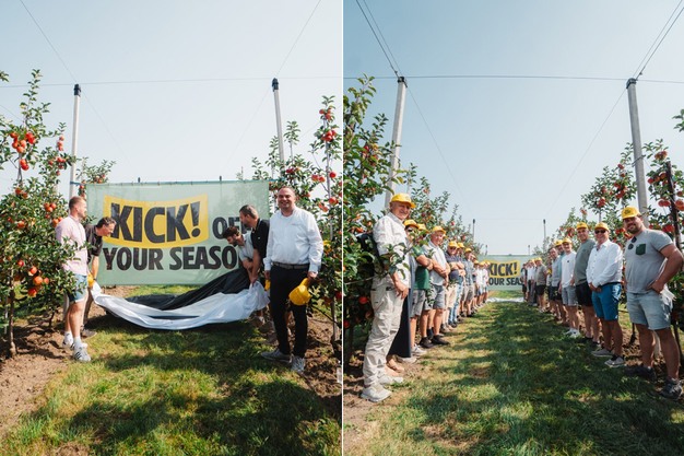 La mela "Kick!" può essere raccolta a metà agosto, circa tre o quattro settimane prima della Gala. Secondo Fresh Forward, rappresenta "un'alternativa resistente alla ticchiolatura alla Delcorf ed è una mela ideale con cui aprire la stagione".