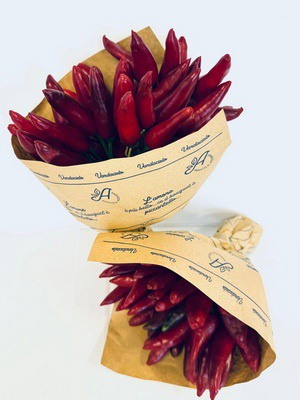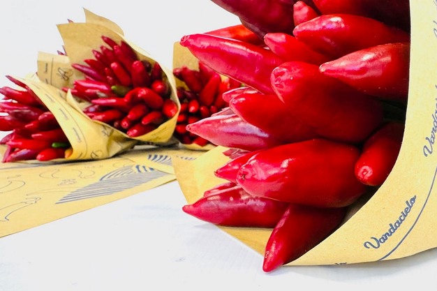 Un'idea semplice ma rivoluzionaria. Ideato da Agricola Azzurra nel 2018, il bouquet di peperoncini è un esempio unico in Italia di un prodotto ortofrutticolo capace di coniugare tradizione agricola e design, con l'ambizione di portare un prodotto di uso comune in cucina su un livello ulteriore, trasformandolo in un'idea regalo dal gusto dolcemente piccante.