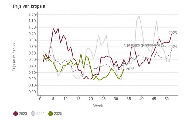 Puoi consultare qui l'intero riepilogo dei prezzi VBT per la settimana 33. Vuoi vedere i grafici dei prezzi in formato più grande? Li trovi, con i dati agricoli, nella pagina del ministero fiammingo dell'agricoltura e della pesca.