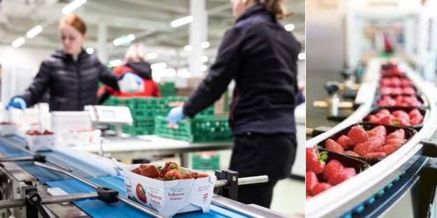 La trasformazione e il confezionamento delle fragole regionali presso lo stabilimento di Egnach