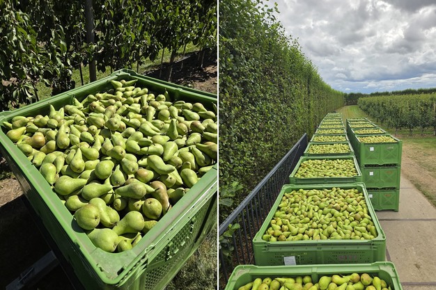 Lunedì 18 agosto 2025 è iniziata la raccolta delle pere Conference presso la Fruitbedrijf van den Berge a Tholen. "Siamo in 25 a raccogliere", afferma Corné van den Berge, che gestisce l'azienda frutticola, attiva da oltre 100 anni, insieme ai genitori ed è impegnato anche nella piattaforma commerciale Service2Fruit. L'azienda ha investito in due Pluk-O-Trak e svolge la raccolta anche con treni di raccolta e una piattaforma aerea.
