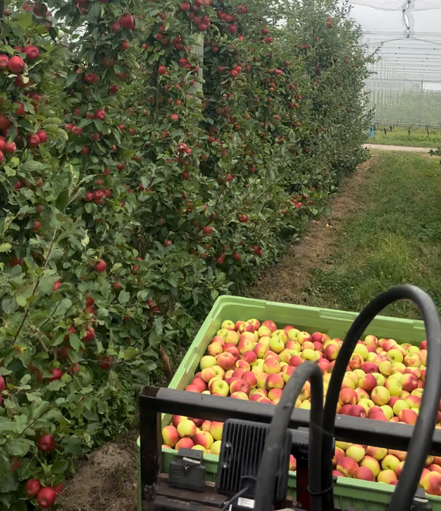 Anche le mele dell'azienda di coltivazione di Loksbergen, nelle Fiandre, stanno crescendo bene. "Abbiamo già raccolto la Santana e sembra buona. Deve continuare a maturare nella cella refrigerata, ma poi arriverà sul mercato. Anche le Jonagold promettono un buon raccolto. Ne abbiamo ancora, anche se le sostituiamo gradualmente ogni anno con varietà resistenti, come GoodnessMe. Abbiamo piantato i primi alberi a marzo, quindi ne abbiamo alcune sugli alberi, ma certamente non sono ancora pronte per un raccolto commerciale. L'idea è di piantarne altre la prossima campagna e ottenere il primo raccolto l'anno prossimo. Siamo decisamente ottimisti anche per questa varietà", sottolinea Gerard.