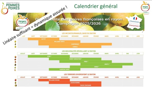 Inoltre, per garantire il buon svolgimento della campagna, è in fase di elaborazione anche un calendario promozionale. "Le promozioni devono coincidere con i picchi di produzione. Non ha senso stimolare i consumi a settembre e ritrovarsi senza pere a dicembre. La produzione francese non copre l'intero fabbisogno", sottolinea Bertrand Gassier, produttore e presidente di Château de Nages Fruits, per il quale la diversità varietale francese rappresenta una vera risorsa. "La pera è il sesto frutto più popolare in Francia, quindi la diversificazione è un'ottima opportunità per distinguersi commercialmente, soprattutto in Francia, l'unico Paese in Europa ad avere una vera diversità varietale, a differenza della monocoltura di Conference nel Benelux o di Rocha in Portogallo".