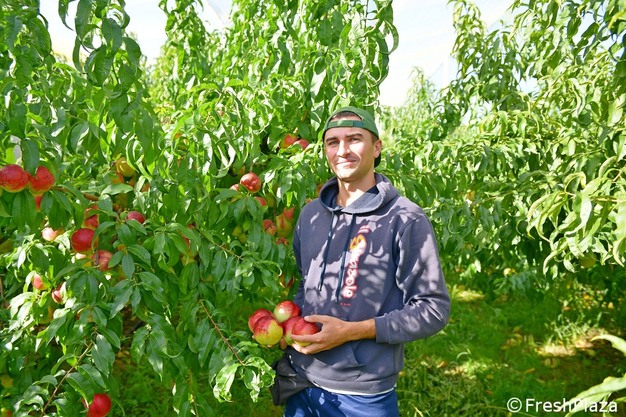 "In questi giorni stiamo raccogliendo la nettarina Romagna Mia, una nettarina a pasta bianca con colore rosso nella parte centrale della polpa" spiega Francesco Neri, 23 anni, il quale affianca, insieme al fratello Federico (24 anni), il padre Daniele in azienda. "La qualità si presenta ottima, così come il calibro: Romagna Mia, come tutta la serie delle nostre pesche e nettarine, si caratterizza per il calibro importante. Ovviamente occorre un'accorta gestione di potatura e diradamento".