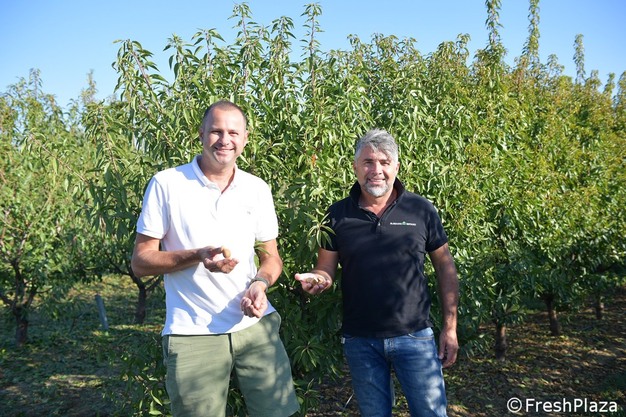 "Tutto si basa - spiega Matteo Ferrari di FruitNet System - sulla meccanizzazione e sull'uso di varietà che fioriscano tardivamente, in modo da evitare possibili gelate. Le due varietà presenti in questo impianto sono Makako e Vialfas".
