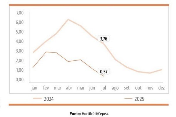 A luglio è iniziata la raccolta principale a San Paolo e Minas Gerais. Il rapido afflusso di cipolle da queste regioni ha velocemente saturato il mercato, impedendo ad alcuni grandi coltivatori di completare la raccolta, a causa della domanda insufficiente.