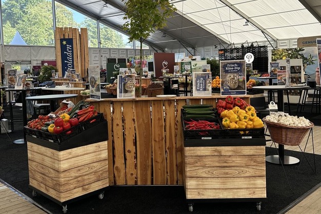 Anche le isole espositive mobili e gli stand promozionali di Pack'nlog in Austria sono molto apprezzati nel settore biologico.