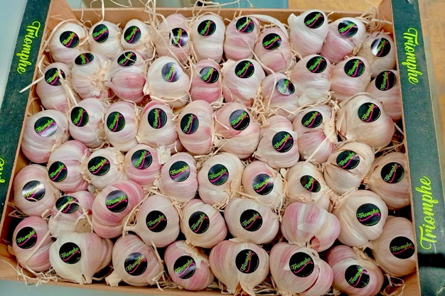 "Nel nostro caso, lavoriamo con aglio bianco e viola e calibri compresi tra 45 e 65+, molto popolari sui mercati e nei supermercati del Nord Europa. Per quanto riguarda l'aglio viola, da 4 anni abbiamo una linea di aglio sbucciato, commercializzata in Francia e Germania con il nostro marchio Triomphe".