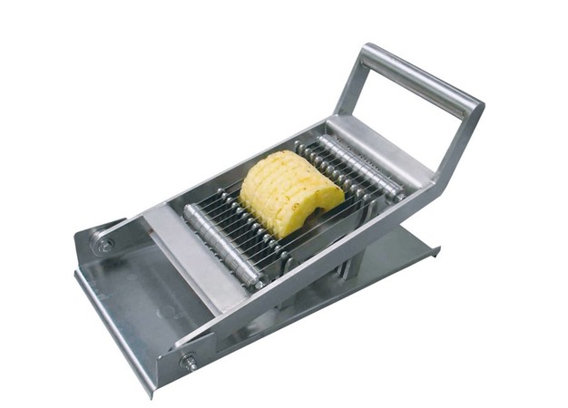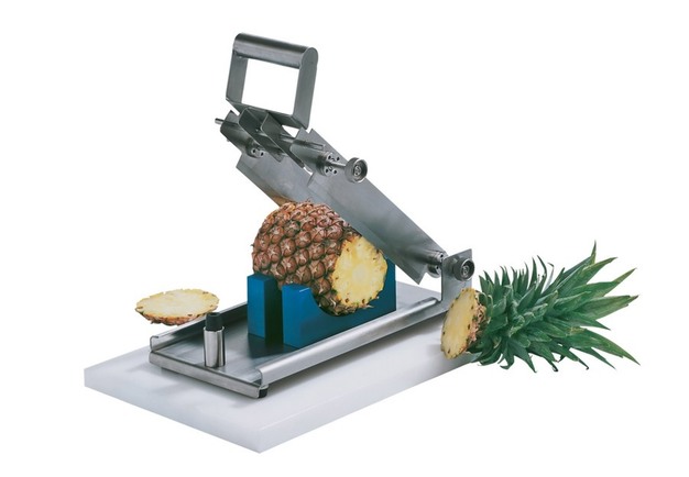 A supporto della sua linea di lavorazione, Tropicaux ha installato diversi dispositivi manuali di Kronen. La linea comprende dispositivi MAK per il taglio delle estremità degli ananas, che facilitano il lavoro di preparazione. Le taglierine a griglia HGW, dotate di inserti speciali, vengono utilizzate per rimuovere la buccia e il torsolo. Le affettatrici MASS tagliano poi la frutta in anelli di 10 o 20 millimetri di spessore.