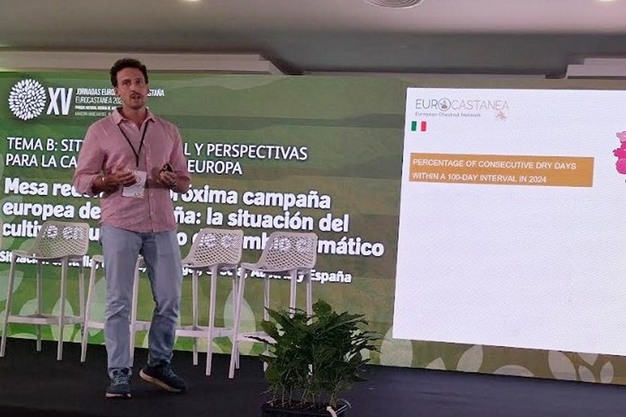 Oggetto di discussione particolarmente vivace è stato il cambiamento climatico, che provoca gravi danni alla castanicoltura di tutta Europa. In particolare, si è fatto riferimento alla disastrosa situazione causata dagli incendi in Portogallo, Spagna e anche Grecia, che hanno danneggiato in modo grave migliaia di ettari di castagneti, contribuendo così ad abbassare la disponibilità di prodotto da immettere sul mercato. Altri fattori climatologici importanti sono le temperature alte e prolungate del periodo estivo, che si alternano a periodi di piovosità molto intense in particolarmente nei periodi primaverili, che rischiano di compromettere la situazione produttiva europea. Nel complesso l'analisi dei dati indica che, al momento, per l'anno 2025 la produzione che si prevede di ottenere a livello europeo, sarà simile o leggermente inferiore a quella del 2024.
