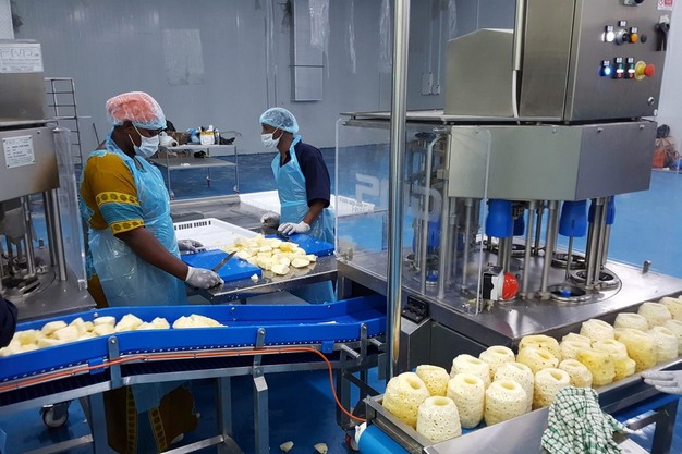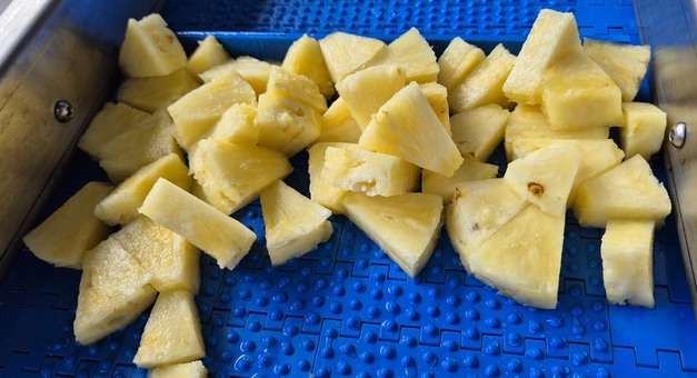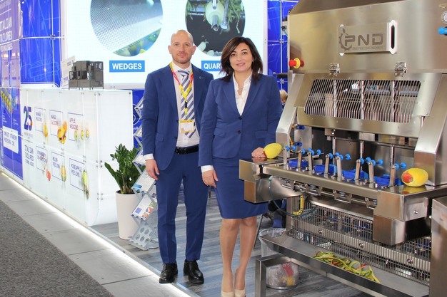 © PND Costruz. Elettromeccaniche Srl"La taglierina SS8 semiautomatica - aggiunge Cascella - si occupa sia del taglio della frutta (mela, agrumi, e kiwi) che della verdura (pomodoro, melanzana, zucchina, cetriolo, carota, patata e cipolla) a spicchi, fette, cubetti, rondelle e stick. Viene, inoltre, implementata in linea, per ananas, melone e mango".