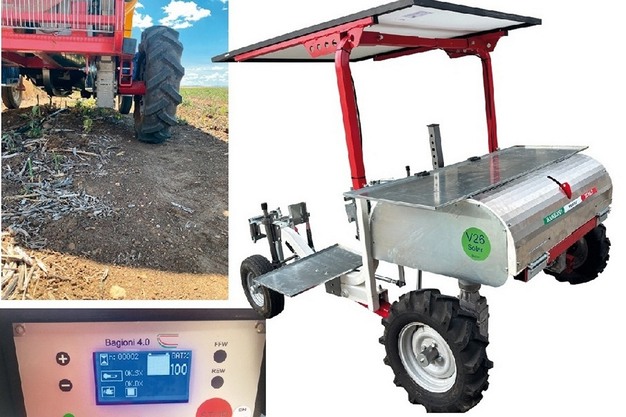 Alla luce di ciò, l'azienda di Forlì Bagioni Technology ha deciso di proporre un'innovazione che rende l'agevolatrice totalmente versatile. "Abbiamo clienti in tutto il mondo - spiega il titolare Aurenzo Bagioni - con esigenze diverse. Allora abbiamo voluto dare una soluzione definitiva. Con la nostra macchina V26 Solar tutti possono avere l'agevolatrice adatta alle proprie esigenze. Ad esempio, possiamo regolarne l'altezza da terra e la larghezza. Presenta tre diverse configurazioni dei sistemi di guida, impostati secondo le necessità più ricorrenti".