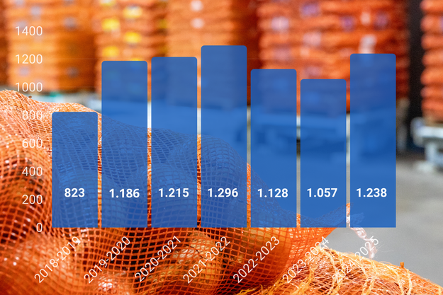 Fino alla fine del 2025, si prevede un nuovo record di area di coltivazione di 33.200 ettari, dovuto principalmente all'espansione delle cipolle rosse (+35,6%). Ciononostante, le cipolle gialle rimangono dominanti, rappresentando oltre l'81% della superficie coltivata.