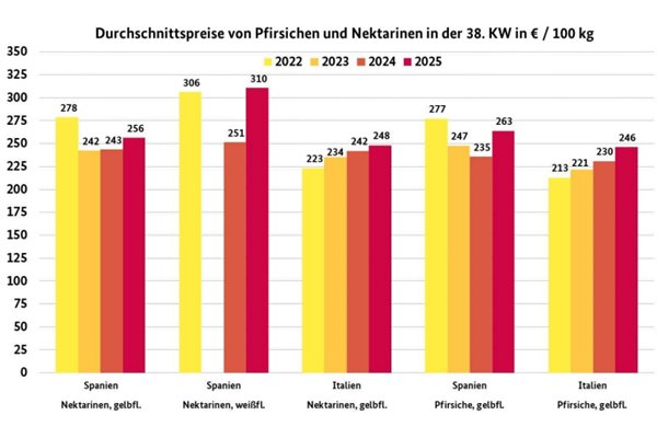Tuttavia, si sono osservati anche rincari, innescati da un'offerta limitata. A Monaco, la domanda iniziale è rimasta sostenuta, causando un notevole calo dell'interesse. Nel segmento Platerina e Paraguayo, le offerte sono state esclusivamente spagnole. Anche in questo caso, nonostante il calo della fornitura, i prezzi hanno spesso mostrato una tendenza al ribasso.