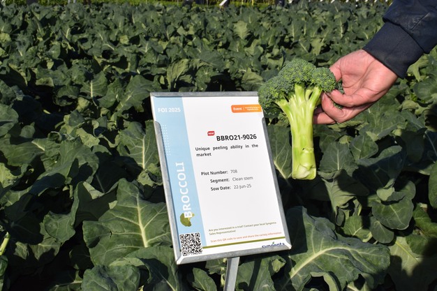 Una nuova varietà di broccoli di grande interesse cresce in altezza e presenta meno foglie sotto la testa, garantendo così un "gambo pulito". La varietà è stata sviluppata per facilitare la raccolta e la trasformazione dei broccoli, ma l'assenza di foglie attaccate al gambo la rende anche particolarmente invitante sugli scaffali dell'ortofrutta. "Si tratta ancora di una sperimentazione che cresce fino a un broccolo pronto per la raccolta di circa 300 grammi, ma mi aspetto che in futuro le varietà raggiungano un peso di raccolta di 500 grammi", spiega Niels.