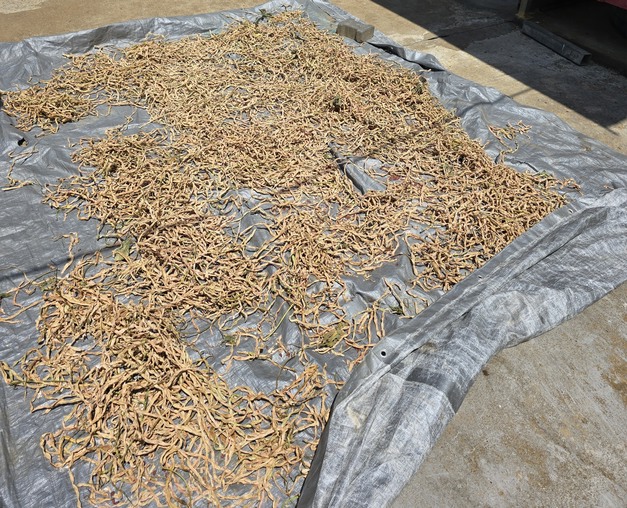 I fagioli lunghi sono messi a essiccare. Dai legumi essiccati vengono estratti i semi per il raccolto successivo