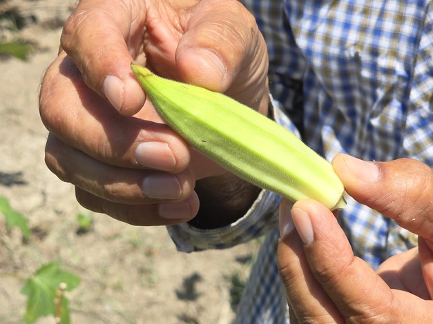 Uno dei prodotti di punta nell'esportazione è l'okra. "È molto richiesto nei Paesi Bassi, in Germania e nel Regno Unito", afferma Bhies. "Sapevate che la crosta marrone su alcuni hamburger dei fast food contiene polvere di okra? Coltiviamo questo ortaggio su 20 ettari. È una superficie piuttosto ampia. Per piantare 10 ettari ci vogliono otto persone che lavorano un'intera settimana. Per questo stiamo cercando dei modi per farlo con dei macchinari". I semi arrivano dall'Africa attraverso i Paesi Bassi, la raccolta inizia già dopo due mesi e continua fino a nove mesi dopo la semina.
