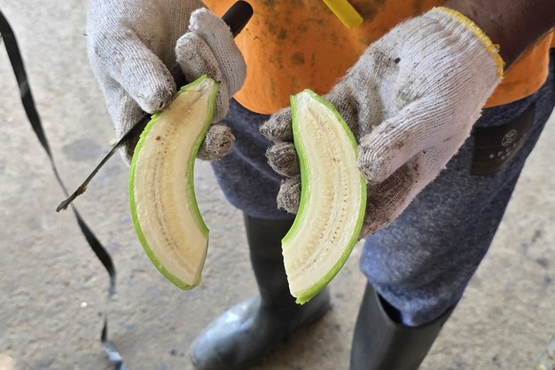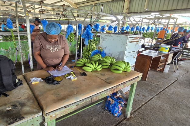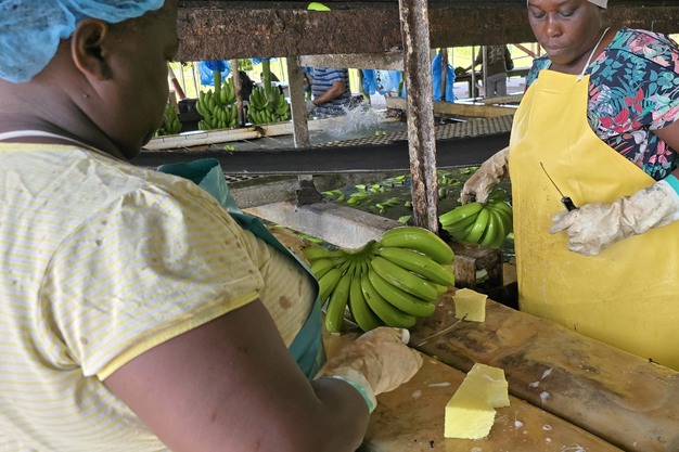 Le donne controllano la lunghezza e la qualità dei frutti e preparano caschi da 4 o 5 banane, a seconda delle richieste del cliente. Tutto ciò che è destinato all'esportazione deve avere una lunghezza minima di 20 cm, mentre i frutti più corti sono destinati al mercato interno e alla trasformazione in chips o purea