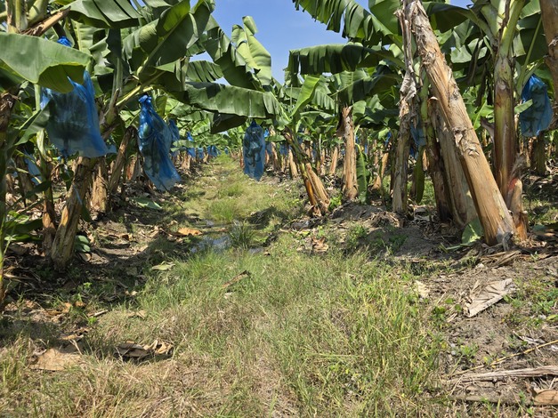 © Pieter Boekhout | FreshPlaza.itLe piante di banano qui non sono molto alte (4 metri circa) e al centro c'è un fossato pieno d'acqua