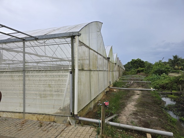 Un ettaro di serre. Plastica con telo ombreggiante sottostante
