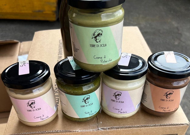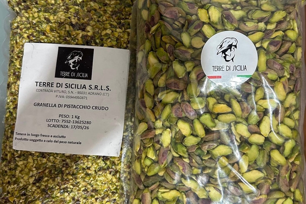 L'azienda Terre di Sicilia opera nella commercializzazione di prodotti trasformati a base di pistacchio. I prodotti principali includono la crema spalmabile di pistacchio, la granella, il pistacchio sgusciato e il pesto di pistacchio. Queste referenze sono disponibili sia in versione biologica che convenzionale. Tra le novità in fase di sperimentazione figura anche un pesto di basilico a filiera corta. Questo pesto è composto da basilico, pinoli nazionali, olio extravergine, Grana Padano, Pecorino, Parmigiano, sale marino e aglio. L'attività è saldamente ancorata al commercio B2B, fornendo articoli alle industrie alimentari, conserviere, dolciarie e ai distributori per il canale HoReCa.