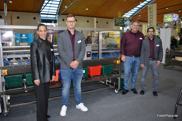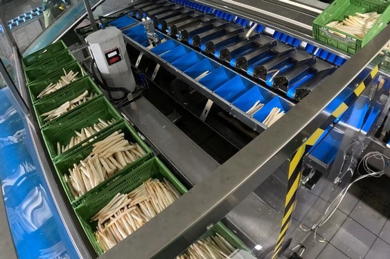 "Il funzionamento è ben congegnato e innovativo: le cassette con gli asparagi vengono posizionate su un nastro trasportatore, una telecamera registra il livello di riempimento e calcola la posizione ottimale di presa. L'Aspaload solleva i gambi e li posiziona con precisione sul nastro di carico della nostra macchina selezionatrice Espaso", spiega Neubauer. Le cassette vuote vengono poi impilate automaticamente.