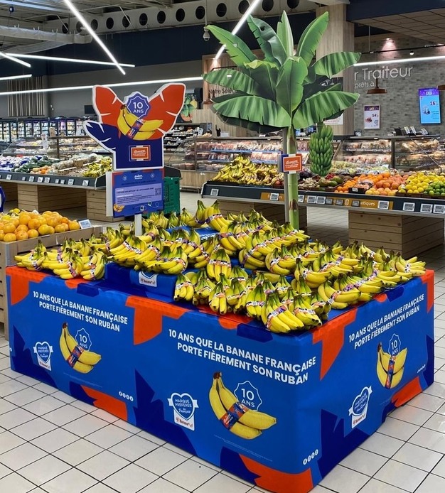 Sono ormai dieci anni che la banana francese viene venduta nel suo iconico packaging blu, bianco e rosso. Nel tempo ha conquistato il cuore dei consumatori francesi e continua a crescere, nonostante un contesto economico complesso. In un decennio si è affermata come un marchio originale, con una storia di strategia e resilienza, e con progetti ancora più entusiasmanti all'orizzonte.