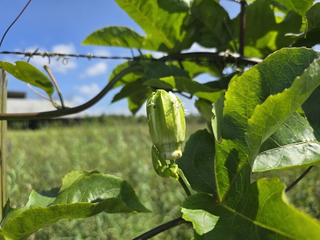 La coltivazione del frutto della passione è intensiva in termini di manodopera, soprattutto per l'impollinazione. Qui una foto di un fiore di frutto della passione.