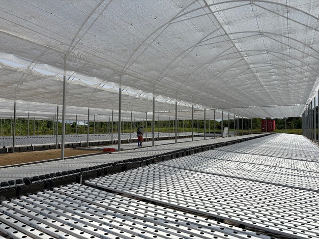 Henk e Rakesh hanno scelto la tecnologia israeliana per serre e reti ombreggianti. "Tutta la luce entra, ma la temperatura resta alcuni gradi più bassa rispetto all'esterno", spiega Henk. La struttura è realizzata dalla brasiliana Hydro Group, con plastiche e sistemi di irrigazione di Arco 4G. La lattuga crescerà su canalette, con semi forniti da ditte sementiere olandesi tramite rappresentanti in Sud America.