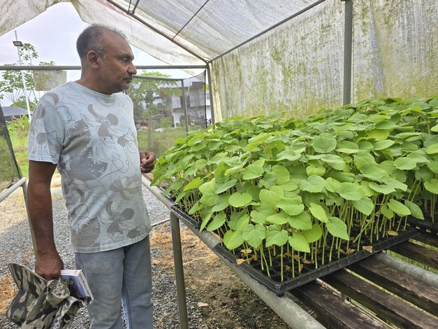 Il vivaio offre un'ampia gamma di piante: pak choi, kai soi, sedano, peperoncini, melanzane, cetrioli, pomodori da mensa e papaya, oltre a fagiolini lunghi (kousenband). Negli ultimi anni Kewal ha notato una crescente domanda di lattuga e peperoni. "E quello che vuole il cliente, io lo semino. Il cliente è re".