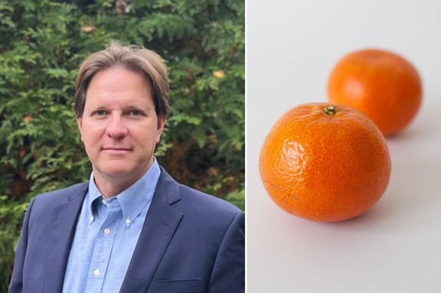 A sinistra: Bernardo Calvo. A destra: Varietà di mandarino Leanri della Sun World.