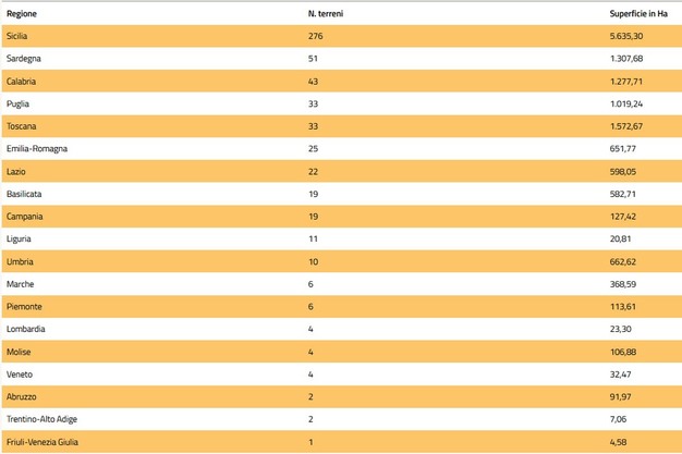 I terreni della BTA sono distribuiti su tutto il territorio nazionale, con una forte concentrazione nel Mezzogiorno: dopo la Sicilia che raccoglie da sola il 40% delle superfici all'asta, e la Toscana con l'11%, seguono infatti Sardegna e Calabria (9% ciascuna) e Puglia (7%), prima di Umbria, Emilia-Romagna e Lazio.