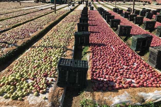 Unica al mondo è la pratica della maturazione all'aperto nei cosiddetti "melai". I frutti, a causa dell'elevato rischio di cascola preraccolta, vengono raccolti acerbi nei mesi di settembre/ottobre e fatti maturare in apposite aree (fig. 1). Si tratta di piccoli appezzamenti larghi al massimo 1,50 m. Per evitare ristagni d'acqua, vengono stesi materiali soffici: in passato si usava la canapa, oggi si impiegano aghi di pino, trucioli di legno o altri materiali vegetali oppure teli in tessuto. Per proteggerli dall'eccessiva esposizione al sole, i melai sono coperti con reti antigrandine; in passato si usavano rami di castagno. Se le temperature di settembre sono troppo alte, si utilizza la nebulizzazione d'acqua per temperare. Le escursioni termiche dell'autunno campano favoriscono la sintesi dei pigmenti colorati, così che i frutti acquisiscono la loro tipica colorazione rossa completa dopo circa 10-30 giorni. Durante questo processo, l'acidità diminuisce, si sviluppano ulteriori aromi, la polpa diventa più tenera e l'amido viene quasi completamente degradato. I frutti vengono disposti singolarmente e girati almeno una volta a mano. Si possono verificare perdite fino al 20% a causa della perdita di peso e di altri scarti. Nell'azienda visitata, Giacciofrutta, uno dei due maggiori produttori di Annurca insieme a Luce, sono disponibili 12 ettari per questa pratica, che si svolge in modo continuo in rotazione per diversi mesi. È stata notata una forte presenza di lavoratori stagionali indiani, che sembrano progressivamente sostituire gli africani.