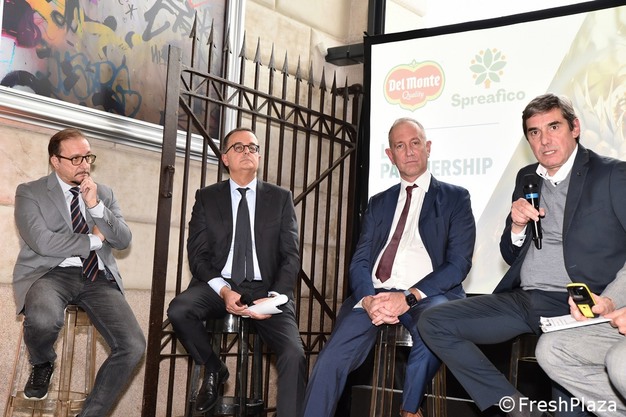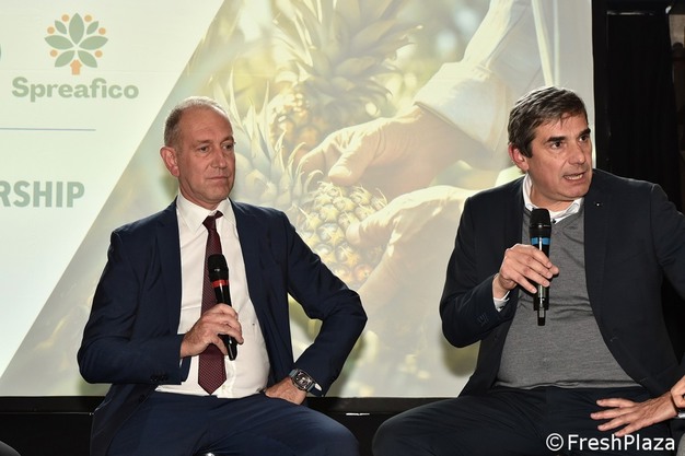 Dopo l'analisi di mercato, la parola è passata ai portavoce delle due compagnie, tra cui Gianpaolo Renino, Senior Vice President of Europe and Africa Fresh Del Monte, e Raffaele Spreafico, Amministratore Delegato di Spreafico. Renino ha illustrato l'impegno globale di Del Monte, azienda che produce in tre continenti (Africa, Centroamerica, Asia) e spinge sulla segmentazione dell'offerta con varietà premium come ananas e banane a marchio Honeyglow®. La partnership, ha aggiunto Renino, è un esempio di come sia possibile "fare sistema" nel settore.