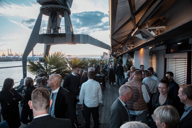 Ospiti ai festeggiamenti dell'anniversario nel porto ittico di Amburgo