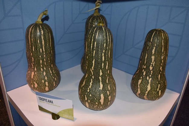 Tropicana è una nuova varietà di Butternut tropicale che, attualmente, viene coltivata principalmente in Sud America e Sudafrica, ma la Sakata Seed sta lavorando per introdurla anche sul mercato statunitense. Questa varietà ibrida è apprezzata per la sua crescita vigorosa e il sapore più dolce, grazie a un grado Brix più elevato rispetto ad altre varietà di Butternut. La Tropicana ha una polpa arancione scuro e una buccia verde scuro che mantiene il colore anche durante lo stoccaggio. "La varietà è già disponibile in commercio in Sud America e Sudafrica, ma la stiamo attualmente testando negli Stati Uniti e speriamo che sia disponibile sul mercato a partire dal 2027", dichiara Watkins.
