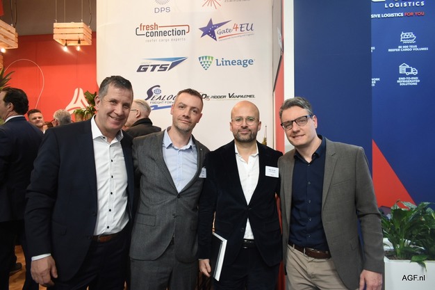 Steve Alaerts (secondo da sinistra) con Henning Goedecke, Diego Barriga (Foodcareplus) e Jan Zobel (Heuer Logistics) alla scorsa edizione di Fruit Logistica.