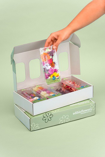 Le vaschette rotonde lasciano il posto a una confezione rettangolare con chiusura superiore e pellicola richiudibile. "La nuova confezione è riciclabile e quindi confezioniamo i fiori commestibili in un involucro sostenibile, trasparente e orientato al prodotto con pellicola richiudibile. In questa confezione i fiori commestibili sono ben visibili e utilizzeremo anche più fiori per vaschetta, ottenendo così vaschette più piene".