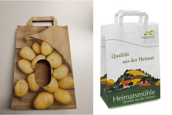 La gamma di prodotti ampliata comprende sacchetti per patate con finestra trasparente (a sinistra) e sacchetti per patate stampati.