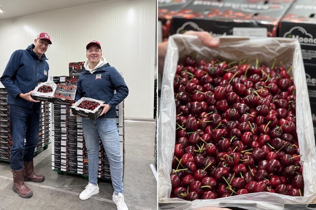 A sinistra: Mark Preesman e Raymon Gerrets di Fruit Freshi. A destra: ciliegie Mooncloud