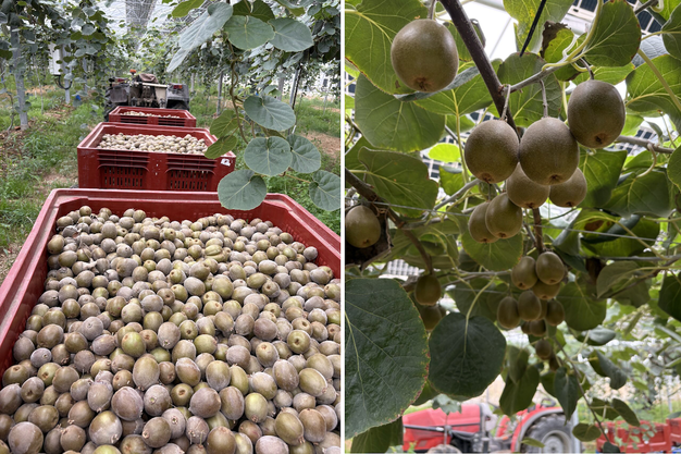 Avendo iniziato da poco a coltivare kiwi, Anthony Oboussier ha raccolto i suoi primi kiwi gialli a metà settembre. "È stato un raccolto modesto, ma nulla di insolito per il primo anno". Poche settimane dopo, il 10 ottobre, è iniziata la raccolta dei kiwi rossi. "Abbiamo ottenuto 1,4 tonnellate per ettaro. È un inizio incoraggiante, perché la qualità gustativa è davvero buona, con un alto contenuto zuccherino e una buona colorazione interna".