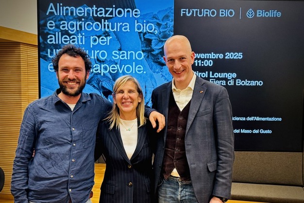 Parlare di agricoltura biologica e biodinamica significa parlare anche di alimentazione e di prodotti di qualità. A Biolife si è tenuta la conferenza "Alimentazione e agricoltura bio, alleati per un futuro sano e consapevole", promossa da Demeter Italia nell'ambito del progetto "Futuro Bio", con il sostegno del MASAF-Ministero dell'Agricoltura, della Sovranità Alimentare e delle Foreste. L'incontro ha riunito esperti e operatori del settore per riflettere sul legame profondo tra la salute della terra, la qualità del cibo e il benessere umano, attraverso un dialogo tra Renata Alleva, nutrizionista e specialista in Scienza dell'Alimentazione, Giovanni de Gramatica, agricoltore biologico del Maso del Gusto di Trento, e Giovanni Buccheri, direttore di Demeter Italia.